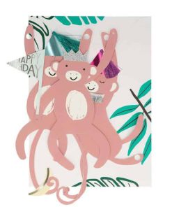 Diese Glückwunschkarte von Meri Meri ist mehr als nur eine Glückwunschkarte: Sie kann sich außerdem in eine Girlande verwandeln! In ihr verbirgt sich auch eine kleine „Happy Birthday“-Nachricht. Mit den süßen Quasten, die als Partyhüte für die Affen dienen, und den schimmernden Foliendetails wird die Karte mal schnell zum Deko-Objekt.