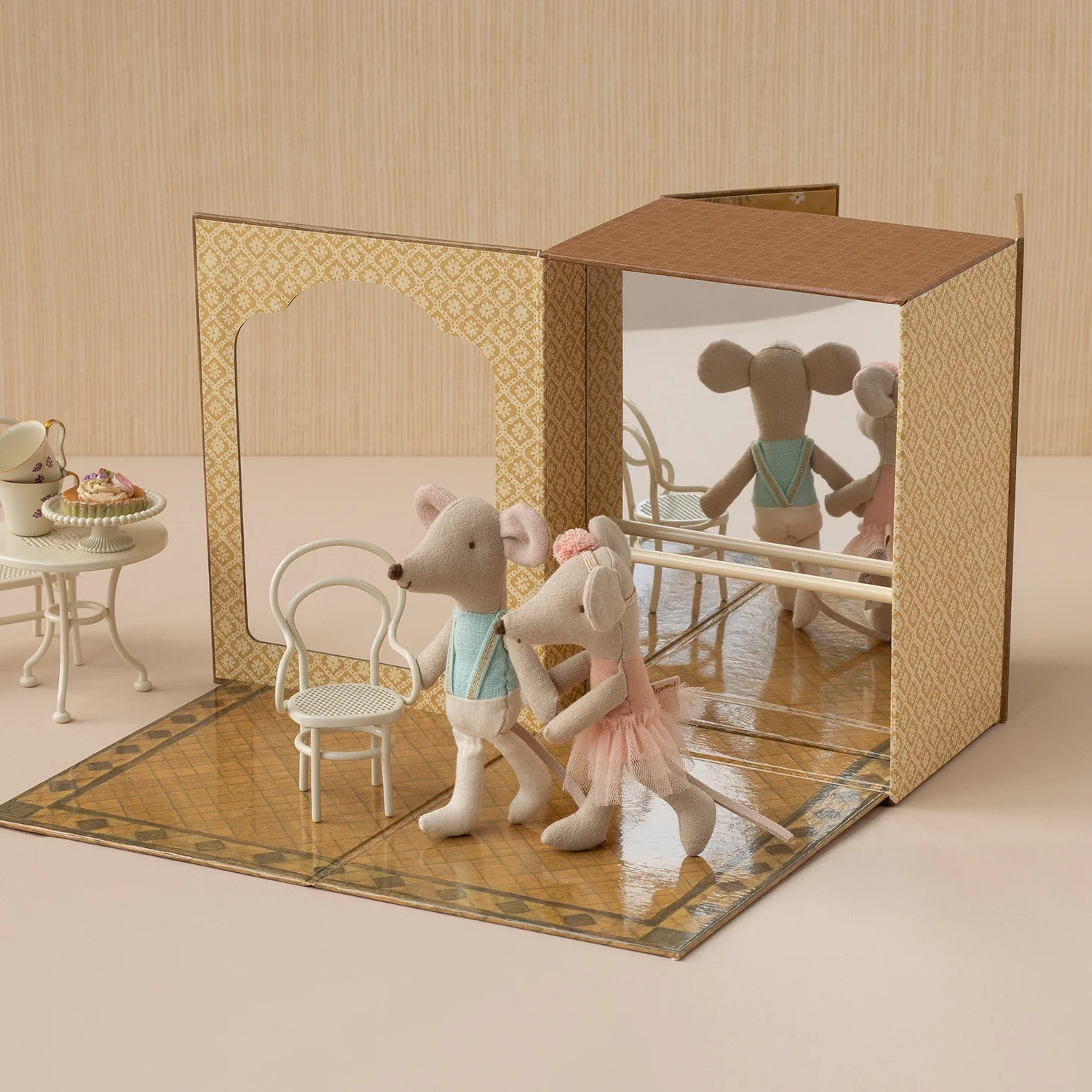 Lust auf ein stilvolles Tänzchen? Diese Ballettmäuse von Maileg schwingt liebend gerne das Tanzbein! Bruder und Schwester bringen in diesem Set sogar gleich noch ihr eigenes Tanzstudio mit, das auch als ein gemütliches Mäusehaus dienen kann.