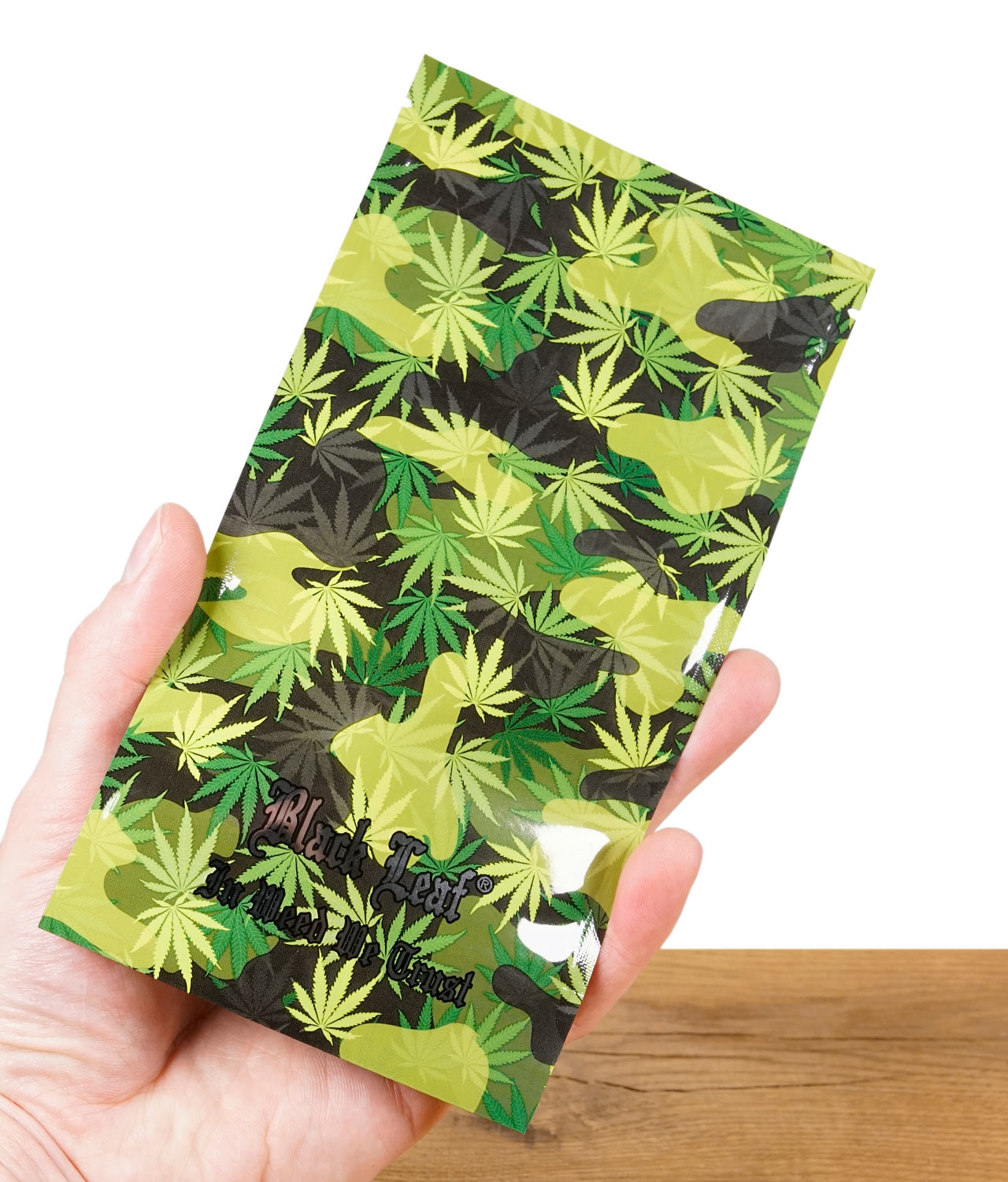 Die Black Leaf In Weed We Trust Baggy's sind luftdichte Druckverschlussbeutel mit auffälligem Camo-Design und Weed-Blättern. Perfekt für eine sichere und stilvolle Aufbewahrung von Kräutern oder anderen wertvollen Inhalten.