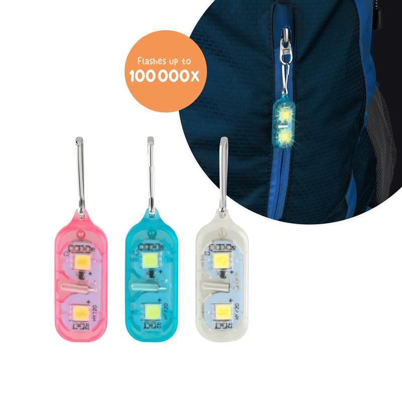 Dieses coole Blinklicht lässt sich ganz einfach mit dem praktischen Karabiner an jeder Jacke, jedem Rucksack und jeder Schultasche befestigen. Eine leichte Bewegungen reicht bereits aus, um die Blick-Funktion zu aktivieren – das sorgt insbesondere in den dunklen Morgen- und Abendstunden im Herbst und Winter für mehr Sicherheit im Straßenverkehr. Die Trendhaus Anhänger leuchten dank ihrer besonders langen Lebensdauer bis zu 100.000 Mal und kommen stets im Doppelpack daher.
