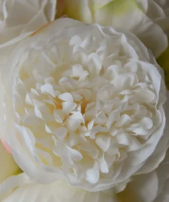 Dieses elegante weiße Botané Pfingstrosen Bouquet Peony Weiß besteht aus 7 Stielen mit zarten, weich geschichteten Blütenblättern. Die filigranen Blüten erzeugen Tiefe und Struktur, während die sanften Kurven der Blätter für eine zeitlose, raffinierte Eleganz sorgen. Das Bouquet erreicht eine Höhe von 33 cm am höchsten Punkt, die Stiele lassen sich jedoch leicht biegen und anpassen, sodass Sie die Höhe und Form ganz nach Ihren Wünschen gestalten können. Ideal als dekorativer Blickfang in Vasen, stilvolle Tischdekoration oder als edles Geschenk.