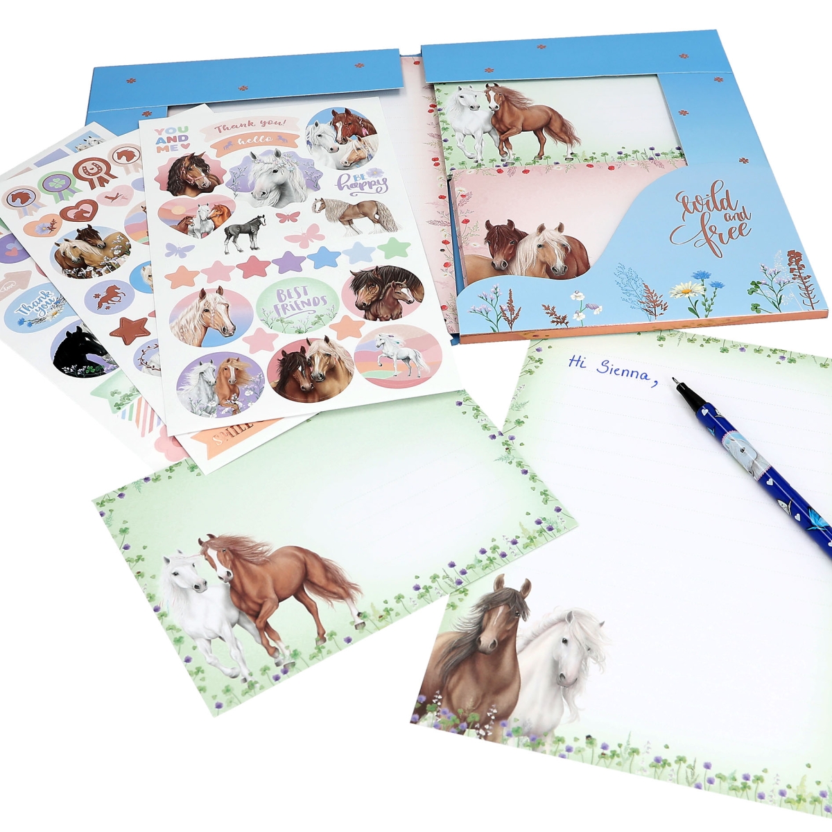 Sanfte Farben, zauberhafte Blumen und wunderschöne Pferde: Zu dem Briefpapier von Miss Melody gehören 24 Briefblätter, 12 Umschläge und 3 Stickerbögen – alles gut verwahrt in einer stabilen Mappe. So kann der Postversand beginnen!
