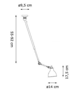 Die DCW Les Acrobates de Gras 302 Deckenlampe wird aus robusten und hochwertigen Stahl gefertigt und die Lampenschirme sind in vielen unterschiedlichen Farbvarianten wie Schwarz (mit Weiß innen), Kupfer, Weiß mit Kupfer innen, Schwarz mit Kupfer innen sowie Messing erhältlich. Die Deckenleuchte kann individuell ausgerichtet und in der Länge verstellt werden. Die Höhe kann aufgrund der individuellen Ausrichtung der Lampe variieren.