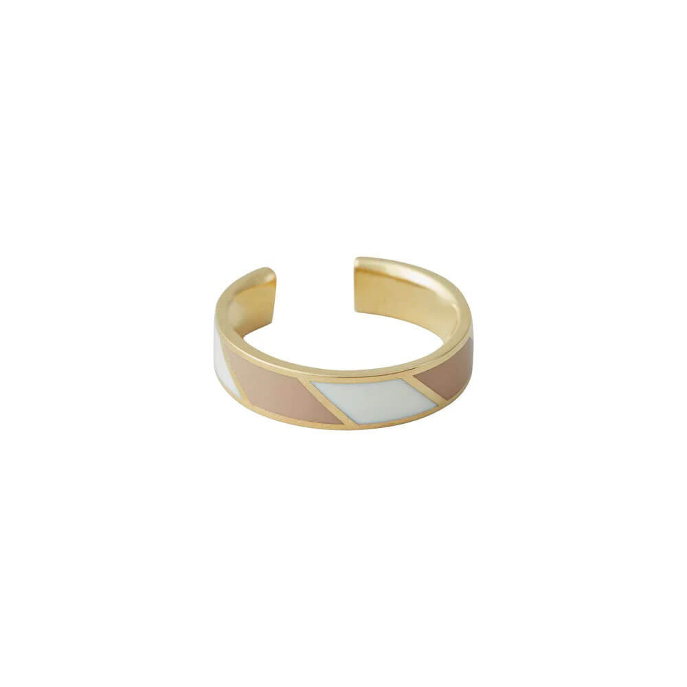 Design Letters Ring Candy Beige-Weiß 18k vergoldet