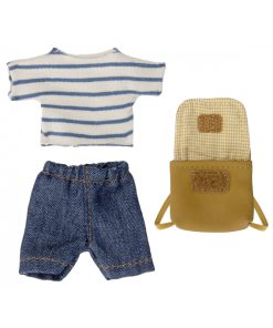 Dieses sportlich affine Maileg-Mäuschen freut sich schon auf sein erstes Dreirad: Es verfügt über Magnete in den Handflächen und ist deshalb ideal mit den hochwertigen Gefährten von Maileg kombinierbar. Die im Vintage-Stil gehaltene Kleidung sowie das süße Täschchen der Maus vervollständigen den coolen Alltags-Look.