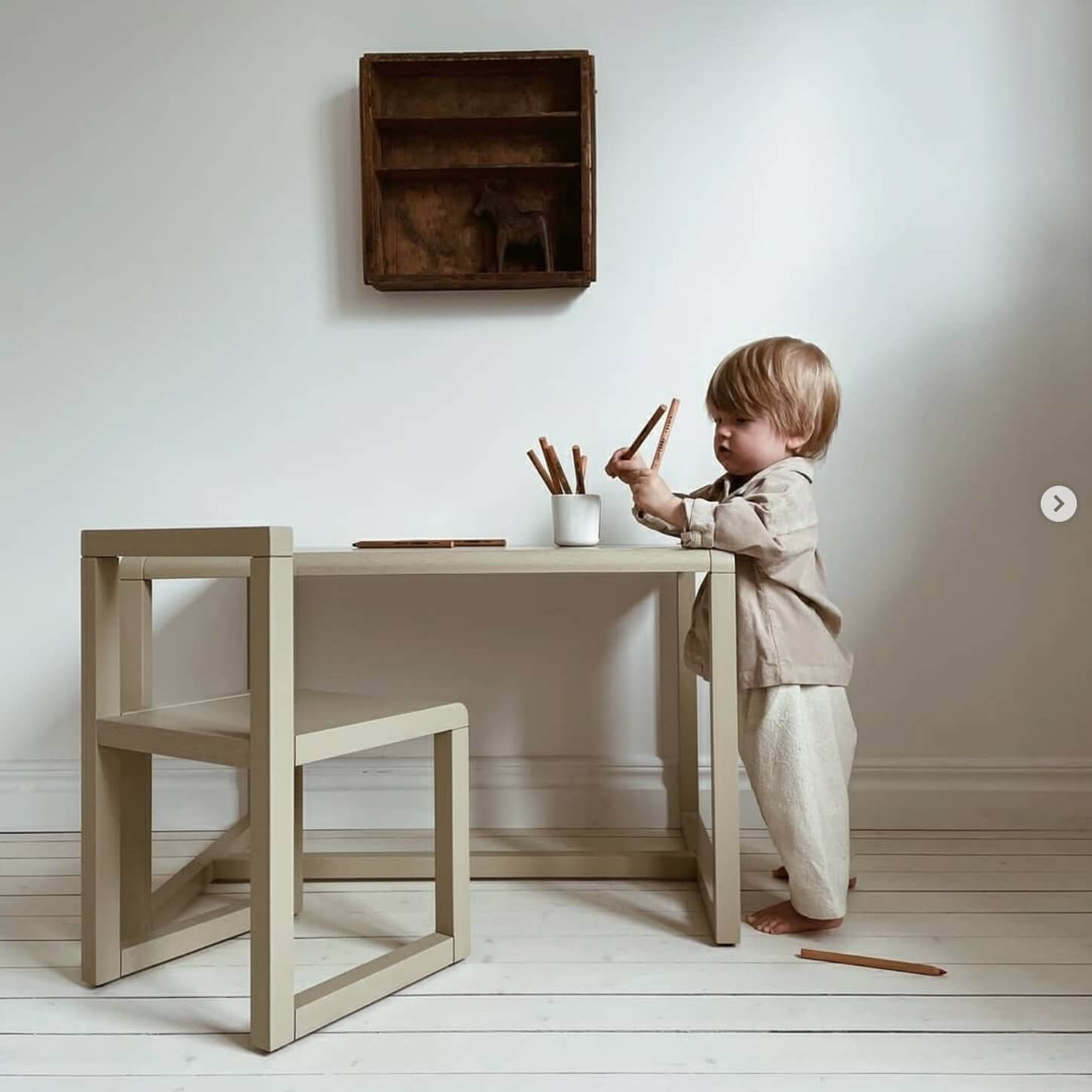 Der ferm Little Architect Schreibtisch Cashmere ist der ideale Ort für Kinder, um sich kreativ auszutoben. Ob Basteln, Malen oder Spielen, an diesem Tisch ist alles möglich. Hier kann man sich nach Herzenslust ausprobieren. Dank des schlichten, kindgerechten Designs bietet er Raum für Ideen. Er misst ca. 70 cm in der Breite und ca. 45 cm in der Tiefe. An diesem Platz können sich deine Lieblinge herrlich frei entfalten. Ganz gleich, ob sie es sich allein oder mit Geschwistern oder Freunden am Tisch bequem machen. Zur Little Architect Serie von ferm LIVING gehören noch weitere Möbel, wie beispielsweise eine Bank und Stühle, die sich mit dem creméfarbenen Tisch perfekt kombinieren lassen. Sämtliche Möbel der Reihe werden dabei aus stabilem Eschenholz sowie Eschenfurnier gefertigt.