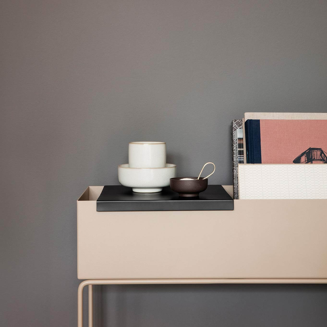 So gibt es passend dazu eine nützliche Ablage. Auch wird die beliebte Pflanzenbox zum praktischen Raumteiler, um kleine ruhige Inseln oder gemütliche Ecken in größeren Räumen einzurichten. Mit dem Pflanzenregal im beliebten Schwarz zeigt das dänische Designlabel seine Leidenschaft für authentisches und funktionales skandinavisches Design.