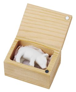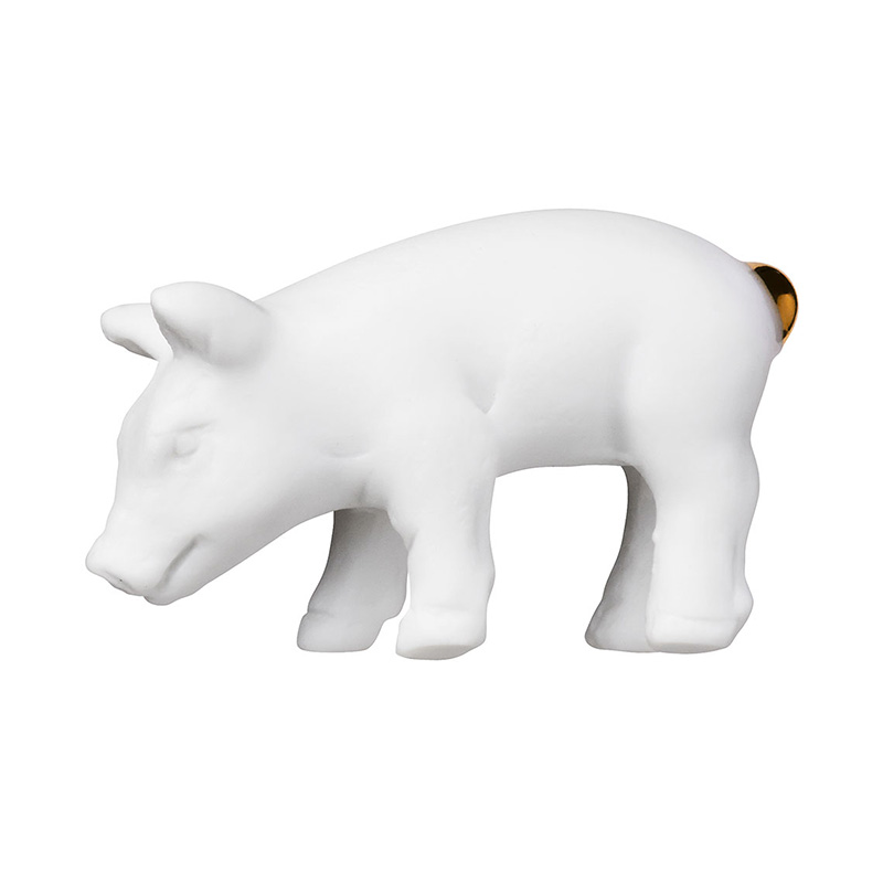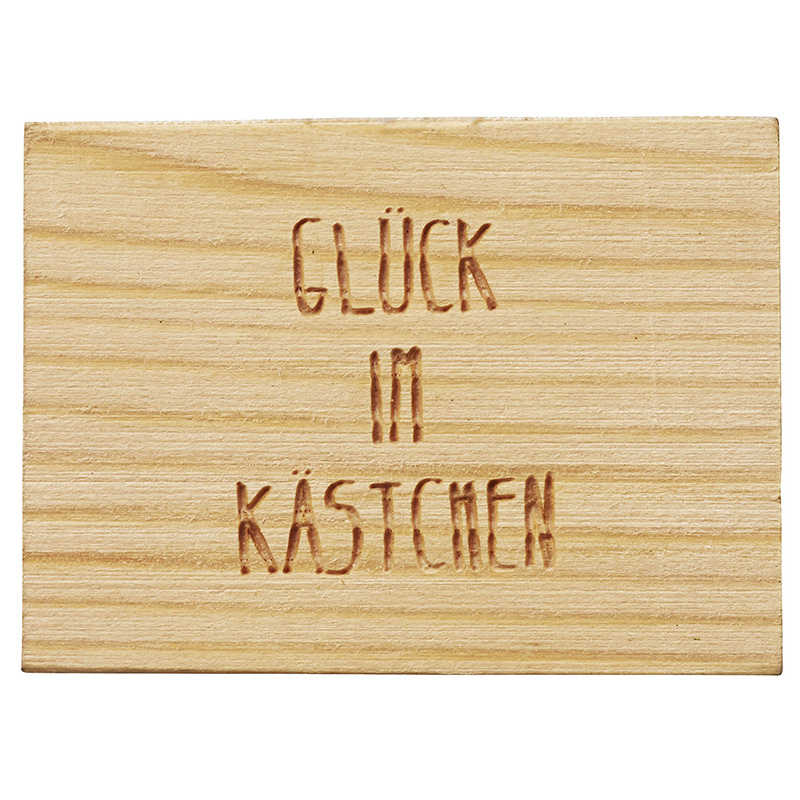 Eine designtechnisch hochwertige Geschenkidee stellt das „Glück im Kästchen“ von räder dar. In der aufklappbaren Holzschatulle mit eingelasertem Spruch befindet sich eine Porzellanfigur – in diesem Fall ein süßes Glücksschweinchen.