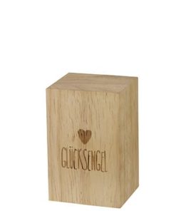 Eine designtechnisch hochwertige Geschenkidee stellt dieser Glücksengel im Holzkästchen von räder dar. In der aufklappbaren Schatulle mit eingelasertem Aufdruck befindet sich ein kleines Glücksengelchen aus Porzellan, das dem Beschenkten besonders viel Glück bringen.