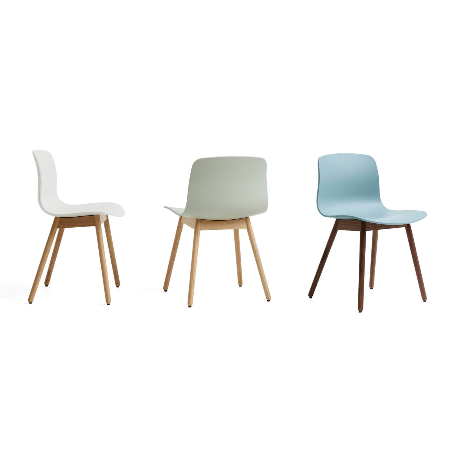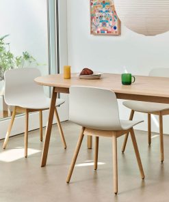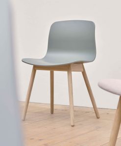 Neben den klassischen Tönen wie Weiß und Schwarz sieht die neue Farbpalette des dänischen Labels viele schöne und v. a. sanfte Töne vor. Hierzu zählen u. a. pudrige Blau- und Grünnuancen. Die Stuhlbeine sind bei diesem Modell aus Eiche (lackiert).