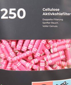In jeder pinken Tüte warten 250 stylische Slim Size Filter mit 5,9 mm Durchmesser und einer Länge von 29 mm darauf, dein Raucherlebnis zu verbessern. Der praktische Zip-Verschluss schützt die Filter vor äußeren Einflüssen und hält sie stets frisch und einsatzbereit.