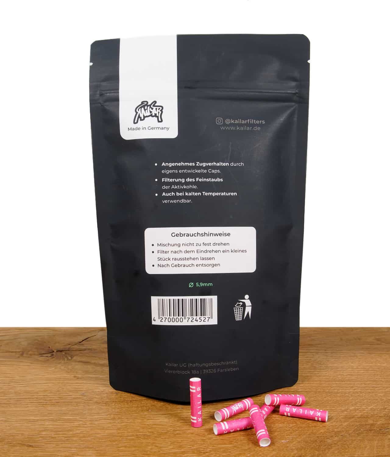 Lass dich von den Kailar Aktivkohlefiltern Slim Size in der Pink Edition verzaubern! Diese Filter sorgen für ein herrlich angenehmes Raucherlebnis und sehen dabei auch noch umwerfend aus. Die Aktivkohle im Inneren der Filter, gewonnen aus Kokosnussschalen, reduziert einen Teil der Schadstoffe im Rauch und sorgt für ein kühles, mildes Aroma.