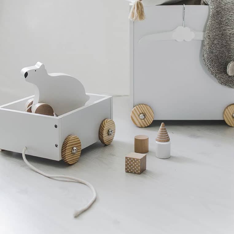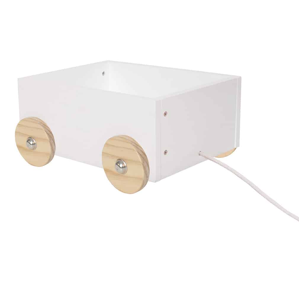 Von kleinen Spielzeugen bis hin zu größeren Kuscheltieren: Auf dieser Spielzeugkiste kann alles aufgeladen und zum Transport fertig gemacht werden! Denn dank ihrer Räder ist die Kiste bequem vom einen in den anderen Raum ziehbar. Das zeitlos elegante Design in weiß sorgt außerdem dafür, dass die Kiste nirgendwo fehl am Platz erscheint.