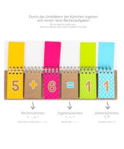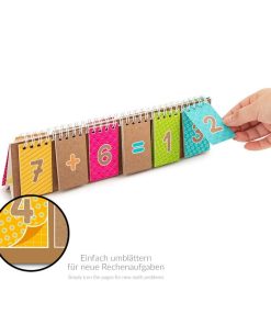 Egal ob addieren, subtrahieren, multiplizieren oder dividieren – mit diesem Lernkarten-Block zum Aufstellen aus stabilen Karton mit Spiralbindung können Kinder die Grundrechenarten spielend leicht lernen und fleißig üben. Durch das Umblättern der Kärtchen ergeben sich immer wieder neue Rechenaufgaben, die es zu lösen gilt. Dann einfach mit dem praktischen Gummibandverschluss verschließen und einpacken.