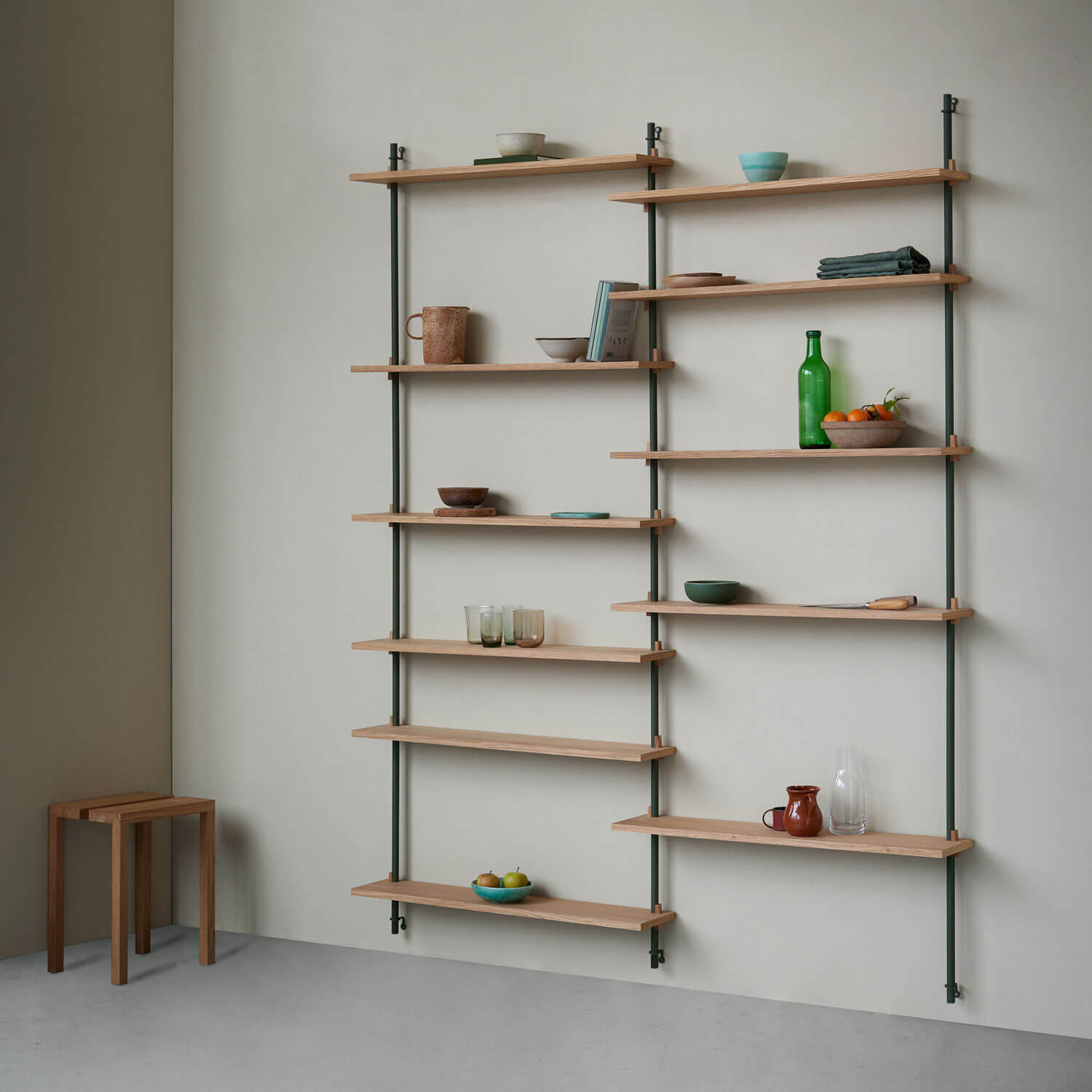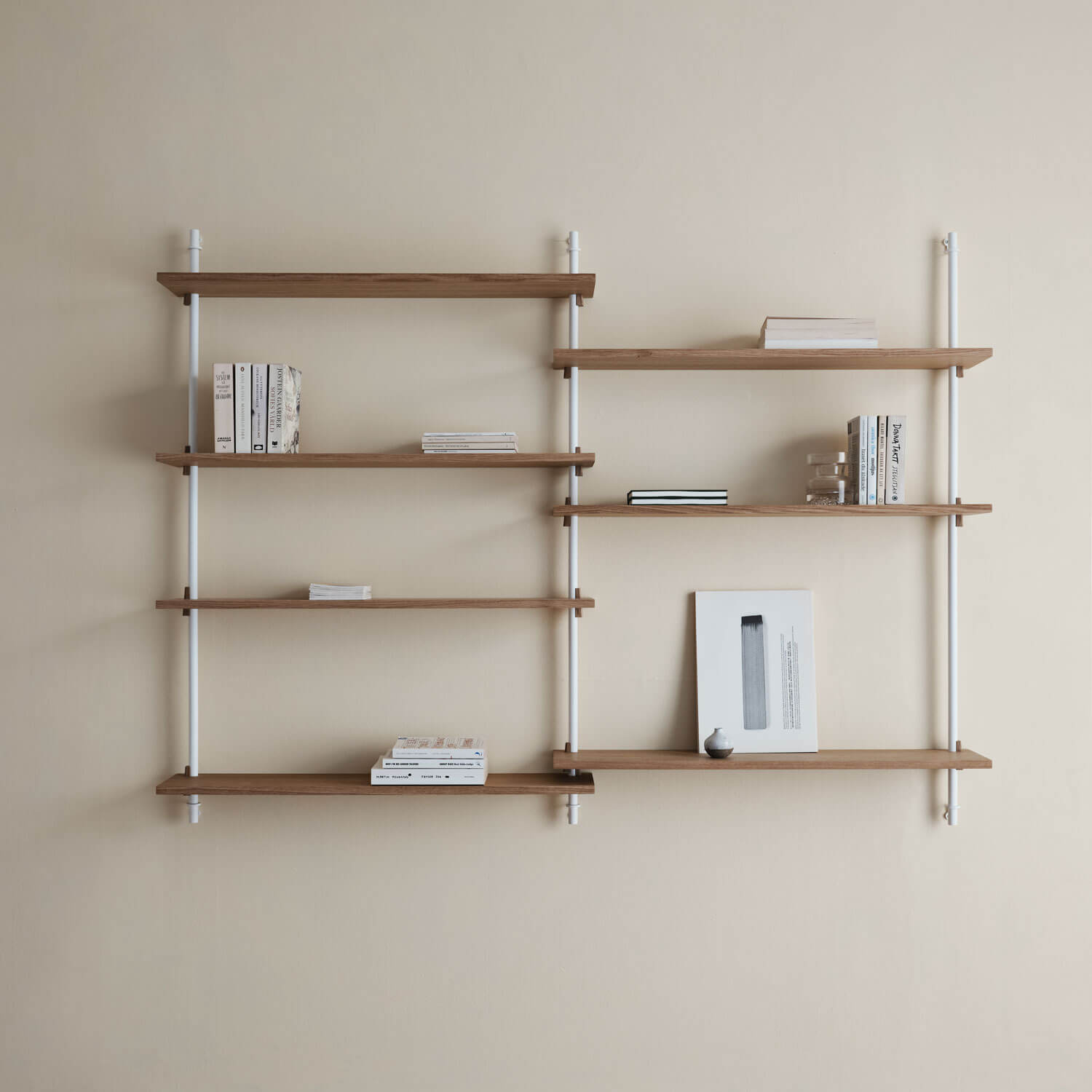 Das Moebe Wall Shelving System eignet sich für jede Wand und jeden Raum. Du kannst es jederzeit anpassen sowie erweitern.