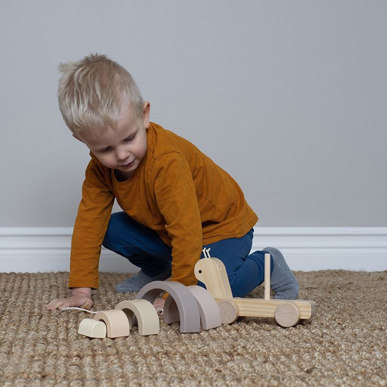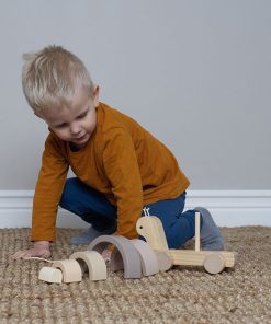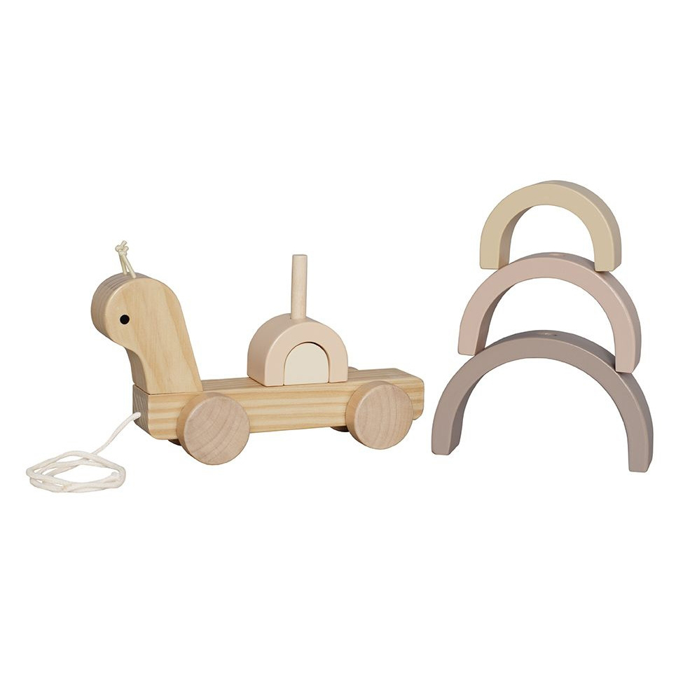 Die niedliche Schnecke als Nachziehtier mit dem stapelbaren Regenbogen auf dem Rücken ist der perfekte Begleiter für die ersten Erkundungstouren jedes Kindes. Mit den 5 Teilen des Regenbogens kann es separat spielen und spannende Konstruktionen bauen, etwa eine Brücke oder einen Tunnel. Hier wird die Kreativität gefördert und die Feinmotorik trainiert.
