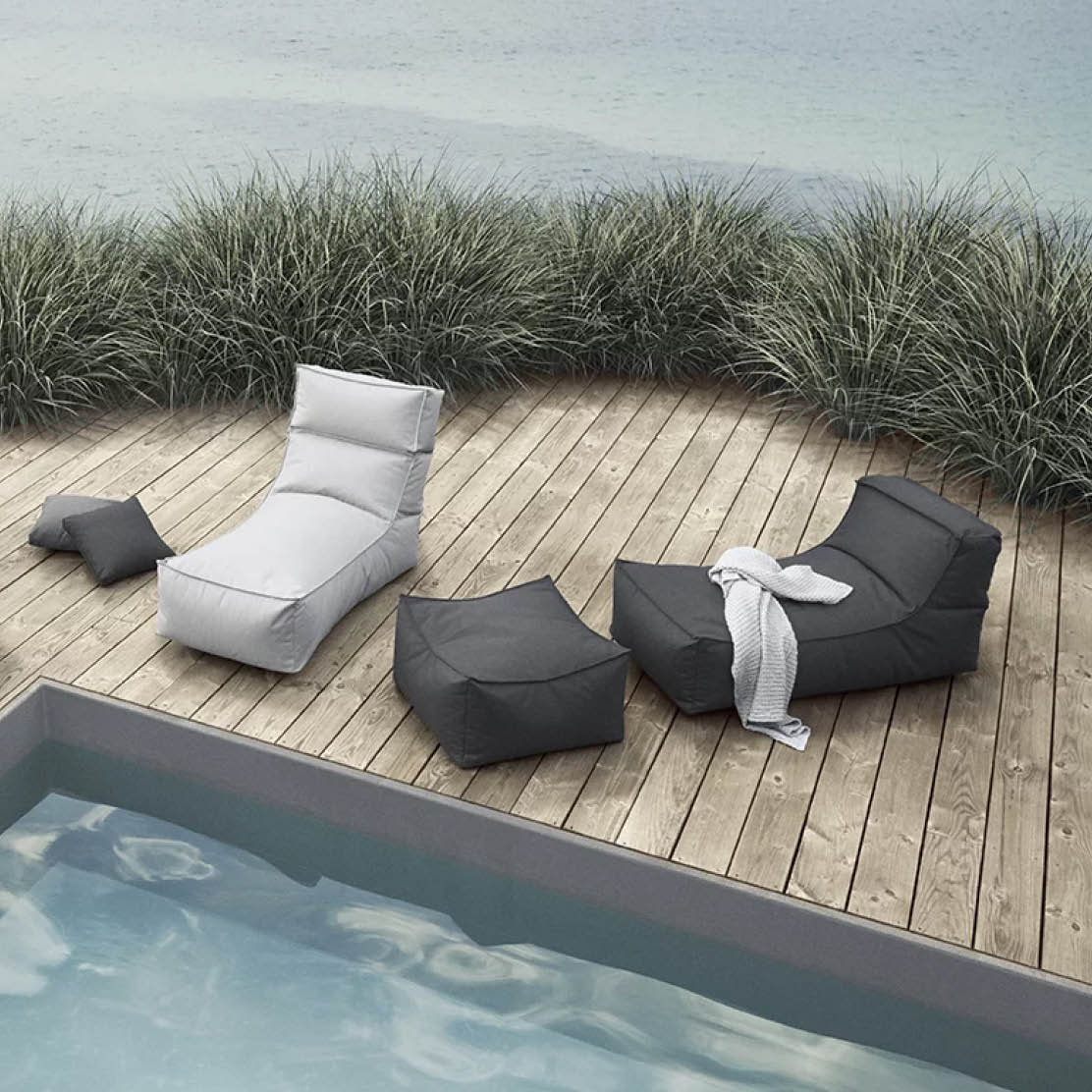 Die „STAY“-Kollektion der Marke blomus steht für hochwertige Outdoor-Sitzgelegenheiten. Der Lounger der Serie verspricht absolutes Relax-Feeling im Garten – auch gerne in Poolnähe. Dabei ist das Material nicht nur wasserabweisend, sondern auch wetterfest, pflegeleicht und UV-beständig. Die Kissenfüllung aus umweltneutralen EPS-Perlen macht das Outdoor-Möbelstück volumen- sowie formbeständig – und so bequem, dass man gar nicht mehr aufstehen mag.