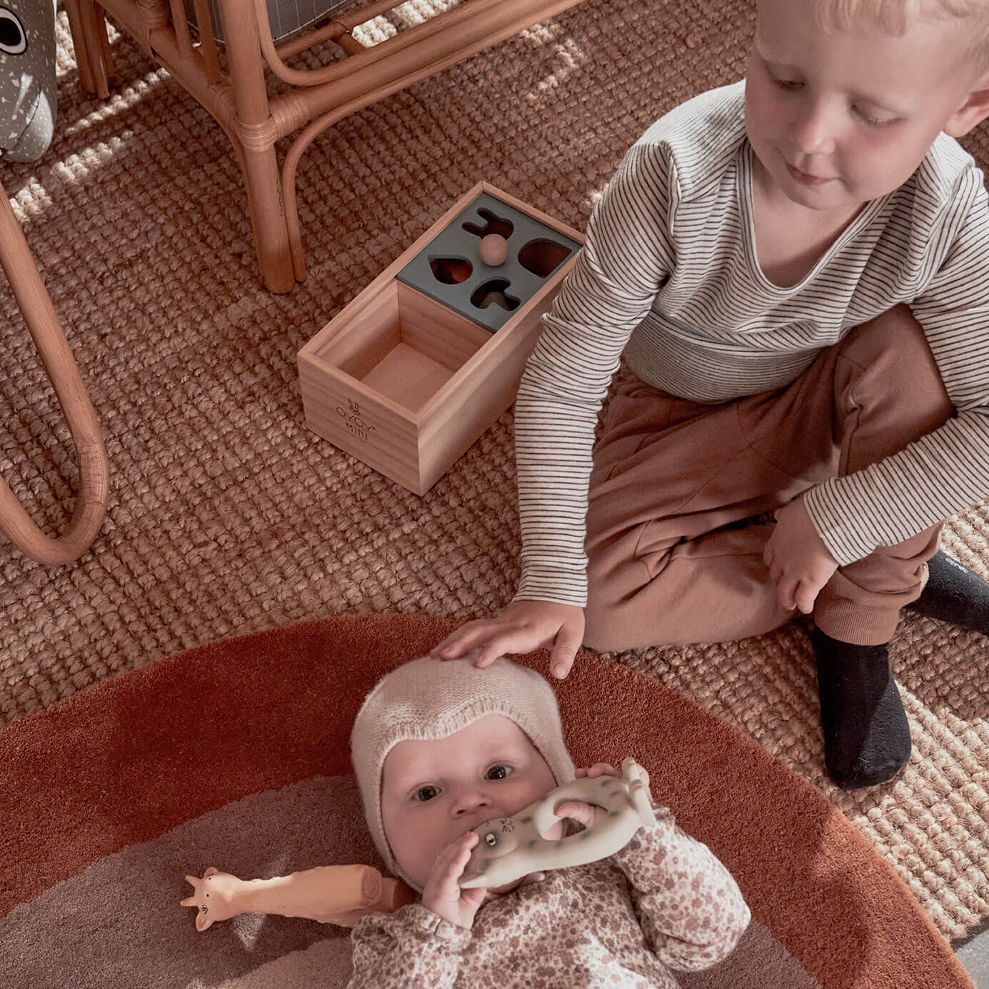 Die liebevoll gestaltete OYOY Spielzeug-Puzzlebox Holz hat an der Oberseite verschiedenen geformte Öffnungen, in die die passenden Holzklötze gesteckt werden müssen. Puzzeln macht Spaß und trainiert die Feinmotorik deiner Liebsten. Die Puzzlebox ist die perfekte Beschäftigung. Das Entwicklungsspielzeug fördert die Fein- und Grobmotorik, die Hand- und Augenkoordination und das räumliche Sehen. Außerdem wird mithilfe der Formerkennung in Steckspielen auch die Geschicklichkeit und Geduld der Kids geübt. Durch die einfach gehaltene Form, können bereits Kleinkinder die Holzteile gut greifen.