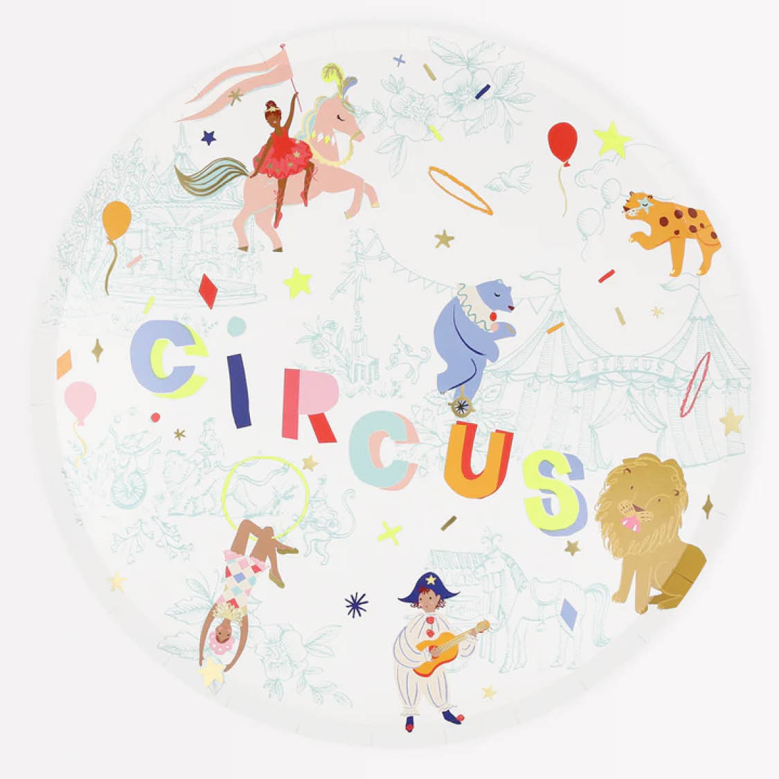 Zirkus-Shows bringen Menschen jeden Alters zum Staunen – diese Pappteller mit niedlichen Motiven aus der Manege von Meri Meri ebenfalls. Die liebevoll und detailreich designten Teller dürfen auf keiner Party mit Zirkus-Motto fehlen und sind das Sahnehäubchen der Tischdekoration.