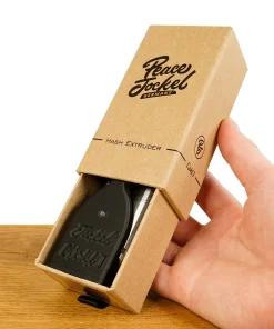Der Peace Jockel Black Diamond kommt in einer eleganten, handgefertigten Verpackung aus recyceltem Karton, die lokal entworfen und produziert wurde. Diese nachhaltige Verpackung unterstreicht das durchdachte Design des Produkts und sorgt dafür, dass der Extruder nicht nur funktional, sondern auch ästhetisch ansprechend ist. Die Verpackung ist nicht nur praktisch, sondern macht den Extruder auch zu einem großartigen Geschenk für Hash-Liebhaber.