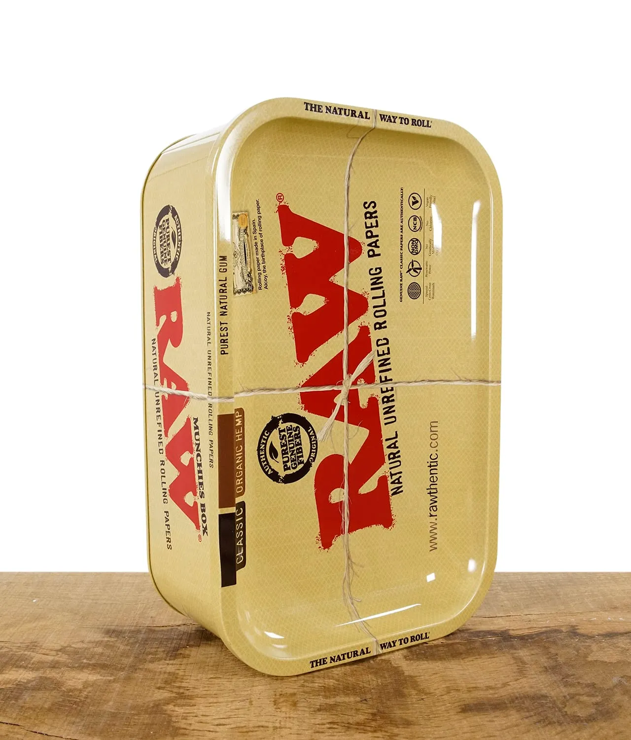 In der “Munchies” Aufbewahrungsdose von RAW kannst du nicht nur dein Raucherzubehör und Kräuter aufbewahren. Der abnehmbare “Deckel” ist gleichzeitig ein Rolling Tray in den Maßen 27,5 x 17,5cm. Die Dose ist ca. 9cm hoch und besteht aus Metall. Das Motiv der Dose und des Trays ist das bekannte RAW Classic Logo.