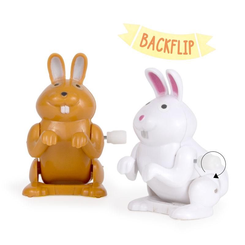 Mit diesem Salto-Häschen ist Spielspaß garantiert: Es wird einfach aufgezogen und auf eine gerade Oberfläche gestellt – und schon vollführt es von alleine einen Salto nach dem anderen!