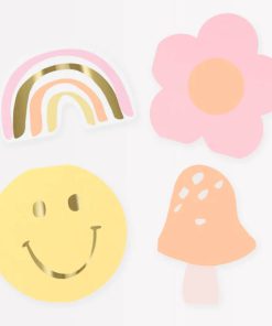Diese Servietten zaubern jedem Geburtstagskind und allen Gästen ein Lächeln auf die Lippen! Sie sind in den Formen verschiedener fröhlicher Symbole ausgestanzt – vom Smiley über den Regenbogen bis hin zu einer Blume und einem „Glückspilz“ ist alles dabei! Das gleichzeitig schlichte, aber auch elegante Design funktioniert zu jedem Motto, vor allem aber im Frühjahr.