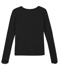 Diese Bluse hat einen Rundhalsausschnitt und eine breite Rüschenkante an der Ärmelöffnung. Sie ist in einer weichen, gerippten Qualität gehalten. Dieses Produkt enthält TENCEL™ Fasern. TENCEL™ ist eine Marke der Lenzing AG.