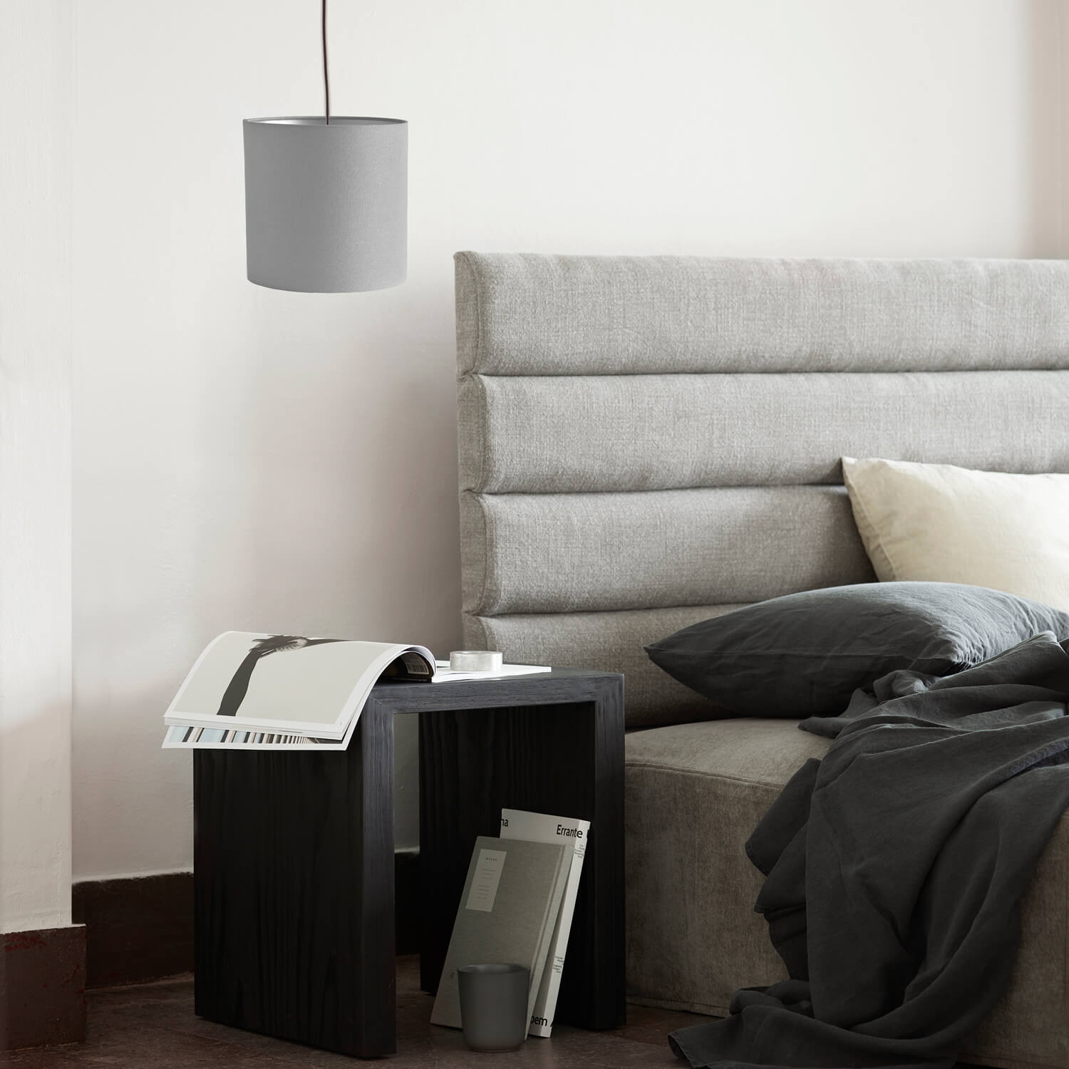 Wir bieten den Tine K Lampenschirm Hellgrau in zwei Varianten an : mit oder ohne Pendel in Schwarz oder Weiß