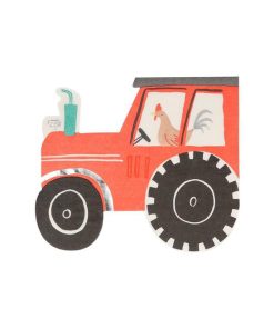 Diese Servietten werten den Tisch jeder Bauernhof-Motto- und Geburtstagsparty auf. Darauf zu sehen ist die liebevolle Illustration eines Traktors, der von einem frechen Hahn gesteuert wird. Das macht die Servietten zeitgleich praktisch wie auch amüsant – und zaubert dem ein oder anderen Kind mit Sicherheit ein Lächeln auf die Lippen!