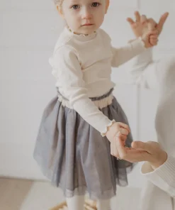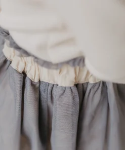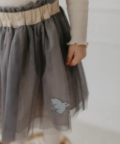 Dieser zarte Tüllrock in einem sanften Blauton überzeugt durch liebevolle Details und einen feinen Farbkontrast. Am Rocksaum sind drei dezent aufgestickte Vögel platziert, die dem Look eine verspielte, poetische Note verleihen. Der elastische Bund in warmem Beige sorgt nicht nur für einen angenehmen Sitz, sondern setzt auch einen stilvollen Kontrast zum luftigen Tüll. Bequem, leicht & edel.