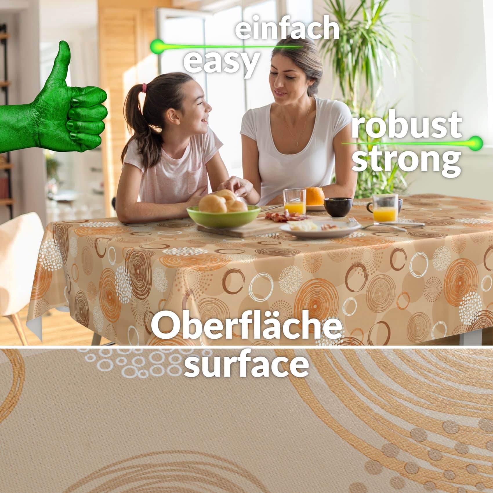 Unsere hochwertige Wachstischdecke LUX ist die perfekte Wahl, um Ihre Tische stilvoll zu gestalten. Die 4-lagige Premium Tischdecke LUX bietet nicht nur im Innenbereich, sondern auch im Freien hervorragenden Schutz. Durch die Kombination erhält die Tischdecke eine besonders glatte Oberfläche, die Schmutz und Flecken abweist. Dies macht sie ideal für Feiern auf der Terrasse, im Garten oder auf dem Balkon. Die abwaschbare Tischdecke besteht aus 100% Baumwollgewebe und schützt Ihre Tische vor aggressiven Flüssigkeiten wie Ketchup oder Senf, die den Untergrund beschädigen könnten. Sie wertet Ihre Tische sichtbar auf und bietet gleichzeitig optimalen Schutz. Erwerben Sie noch heute die Premium Wachstischdecke LUX und genießen Sie die perfekte Kombination aus Stil und Funktionalität für Ihre Innen- und Außenbereiche.