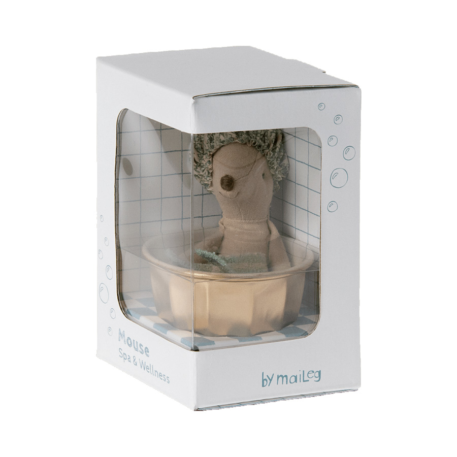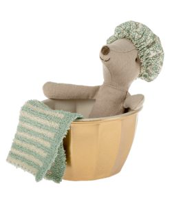 Dieses Familienmitglied der Mäuse-Familie von Maileg entspannt gerne und lässt es sich im Wellnessbereich so richtig gut gehen. Im Lieferumfang enthalten sind eine goldene Badewanne für relaxte Stunden, eine Bademütze sowie ein Handtuch zum Abtrocknen danach. Maileg setzt bei der Produktion der Kuschelmäuse auf eine hochwertige Baumwoll- und Leinen-Komposition, was wiederum für ein angenehmes Gefühl beim Spielen sorgt.