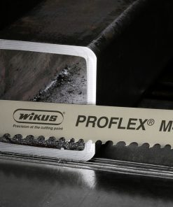 Mit dem Bimetall-Sägeband PROFLEX® M42 schärft WIKUS weiter sein Profil bei der Zerspanung von Trägern und Profilen. PROFLEX® M42 erhält sowohl durch den speziellen Profilzahn als auch durch die verlängerte Verbindung von Schneidstoff und Trägerband eine maximale Stabilität. Der spezielle Profilzahn zeichnet sich durch einen positiven Schnittwinkel und einen verstärkten Zahnrücken aus. Dadurch verringert sich die Anfälligkeit gegen Zahnbruch und Schwingungen beim Sägen von Profilen.