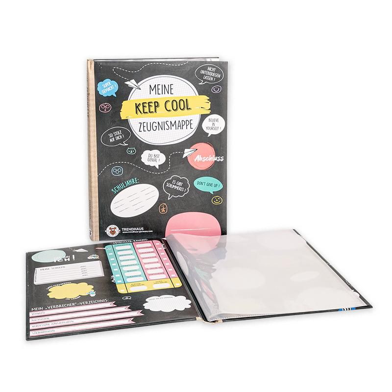 Diese coole Zeugnismappe aus dem Trendhaus bietet mit insgesamt zehn durchsichtigen A4-Folien viel Platz zum Aufbewahren von Zeugnissen und Urkunden. Das liebevoll gestaltete Design mit Raum für individuelle Beschriftungen bietet dabei vielfältige Möglichkeiten, um unvergessliche Erlebnisse rund um die Schulzeit festzuhalten. Die hochwertig Mappe mit wattiertem Cover und fest eingebundenen Folien ist ein ideales Geschenk zum Schulanfang oder Schuljahreswechsel.